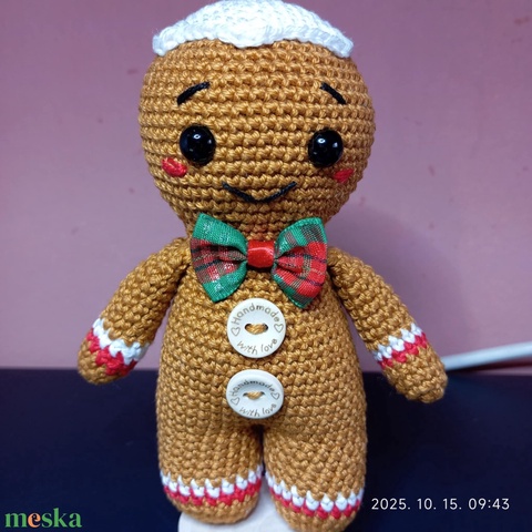 - Anyaga: pamut fonal, biztonsági szem, tömőanyag, fa gomb