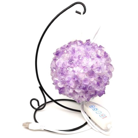 Ametiszt lámpa golyó USB állvánnyal 10cm