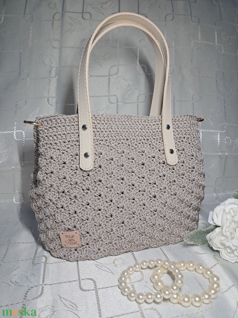 Horgolt bézs kistáska