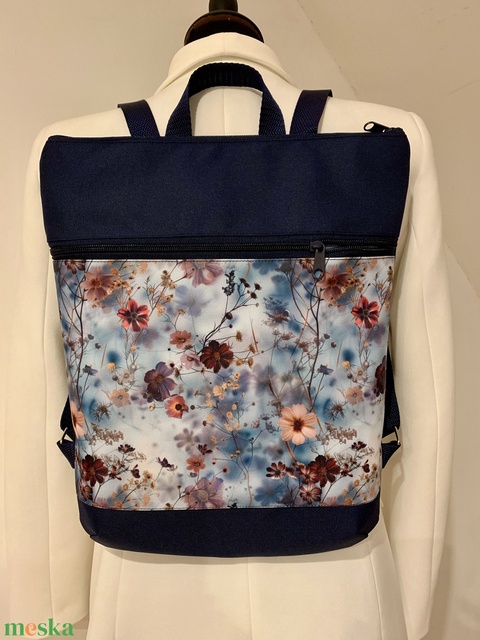 Hátizsák- Sötétkék-virágos-Hátitáska-Vízálló