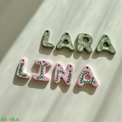 Kézzel festett kerámia betű – név dekor gyerekszobába, ajtóra, egyedi ajándék