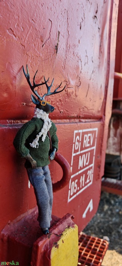 Hipszter szarvas karácsonyi fantázia figura - dekor 25 cm RENDELHETŐ