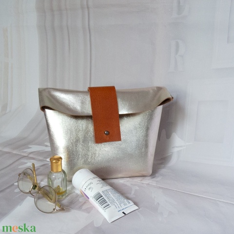 Borjúbőr sminktáska, Ezüst színű olasz borjúbőr neszeszer, piperetáska, kozmetikai táska