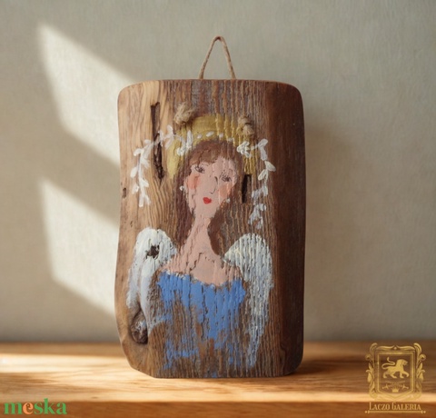 Ábrándozó angyal - Rusztikus Festett Fa, Dekoráció - Falra akasztható - Ajándék ötlet, Angyal, Karácsony