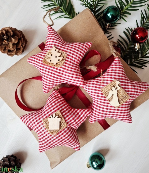 Karácsonyi csillagok- karácsonyfadísz, függődísz, dekoráció 3 db