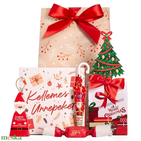 Rendelésre készülő karácsonyi ajándékcsomag édességekkel.