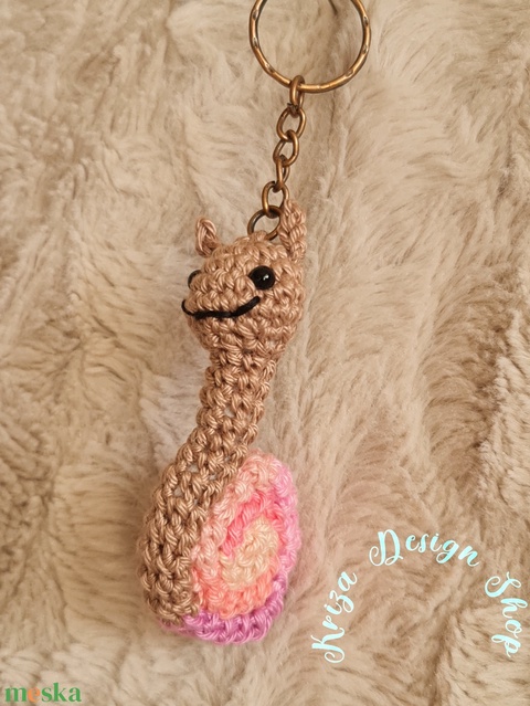 Kézműves horgolt kabalafigurás kulcstartó - Mini csiga (Tropical vibes)