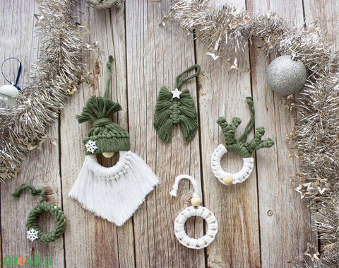 Makramé karácsonyfadísz 5db-os vagy 10db-os csomag