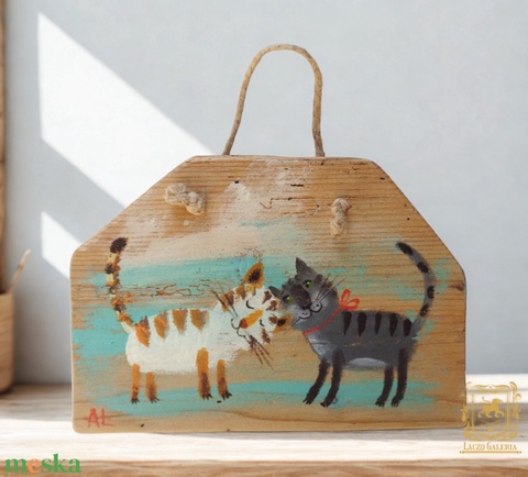 Mirci és Cirmi - Rusztikus Fatábla, Vicces, Humoros Ajándék ötlet - Egyedi Falidísz, Macska, Cica