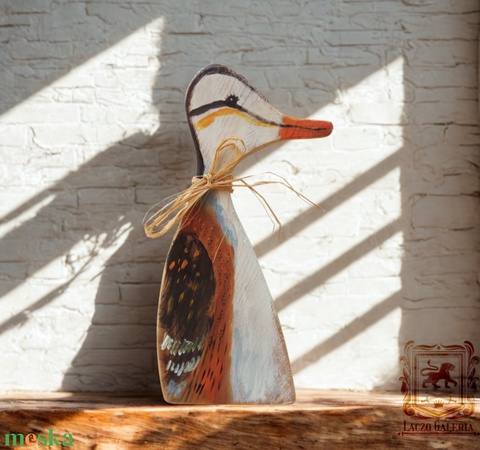 Lóránt a Kacsa - Rusztikus Fa, Ajándék ötlet - Egyedi Falidísz, Madár, Kacsa, Futókacsa, Vadlúd