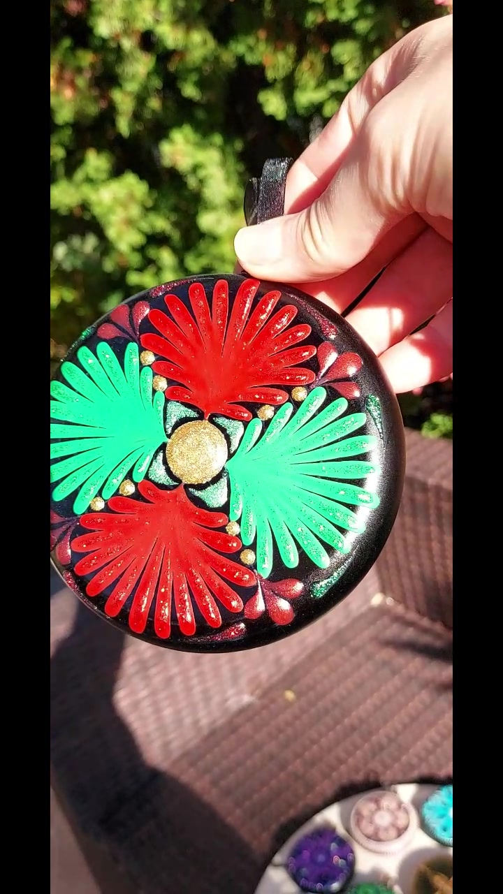 Kézzel festett, egyedi karácsonyfadísz mandala mintával, piros-zöld színben 1 db