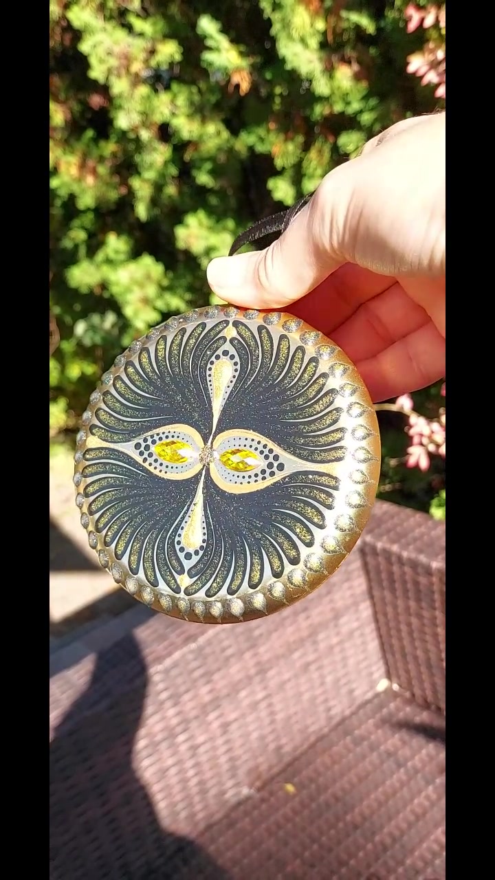 Kézzel festett, egyedi karácsonyfadísz mandala mintával, arany-fekete színben 1 db