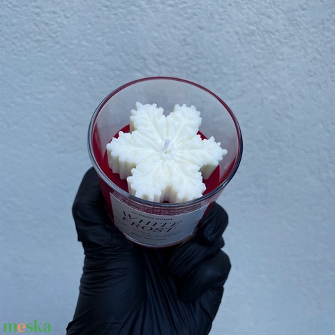 téli gyertya, karácsonyi gyertya, szójagyertya, kézműves gyertya, természetes gyertya, illatos gyertya, Aetheria House, White Frost, téli illat, fenyőillat, havas illat, vegán gyertya, otthoni dekoráció, ajándék karácsonyra, környezetbarát gyertya
