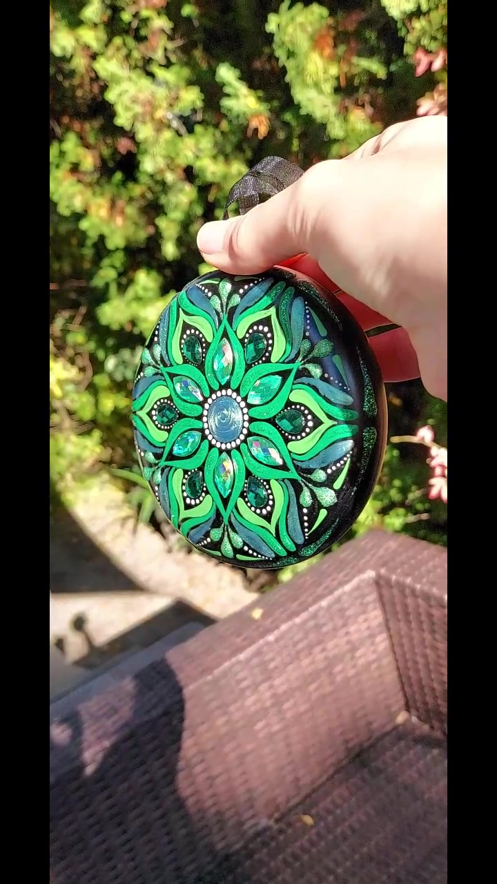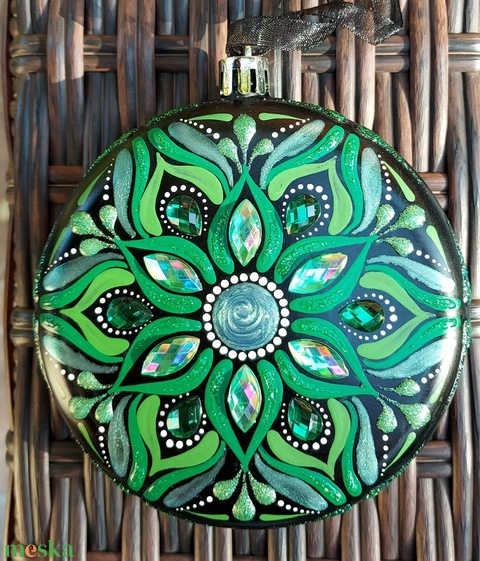 Kézzel festett, egyedi karácsonyfadísz mandala mintával, zöldes színekkel 1 db
