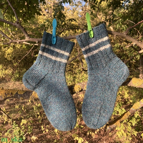 Kézzel kötött gyapjú zokni „Óceán” Méret: 38–39