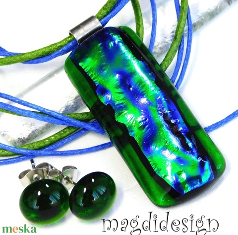 Smaragdzöld hullámzás üvegékszer nyaklánc, stiftes fülbevaló