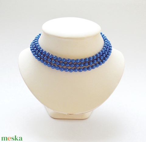 Sötétkék üvegtekla kaláris fényes közepű kásagyönggyel - 3 soros, 6 mm-es gyöngyből