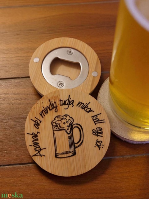Bambusz hűtőmágnes sörnyitó - többféle felirattal