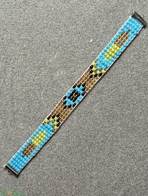 Diszdobozos vilagoskek gyöngyszövött karkötő