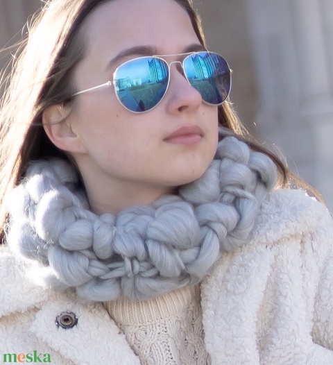 Szürke női körsál: extra vastag, kötött női gyapjú bebújós csősál sál
