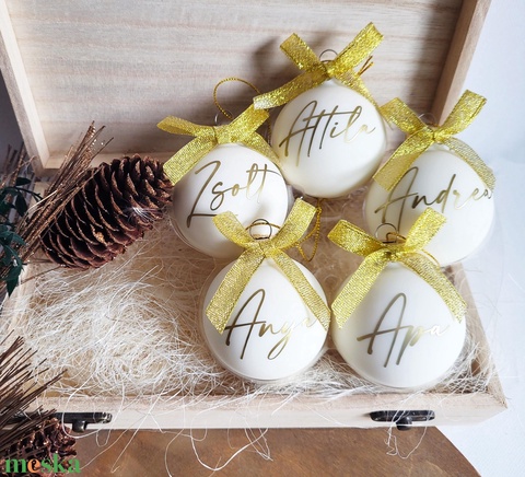 karácsonyi üveg gömb névvel feliratozva, 6cm, választható gömb, név és masni szín