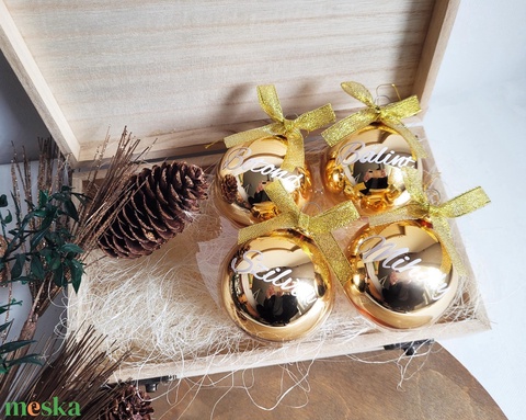 karácsonyi üveg gömb névvel feliratozva, 6cm, választható gömb, név és masni szín