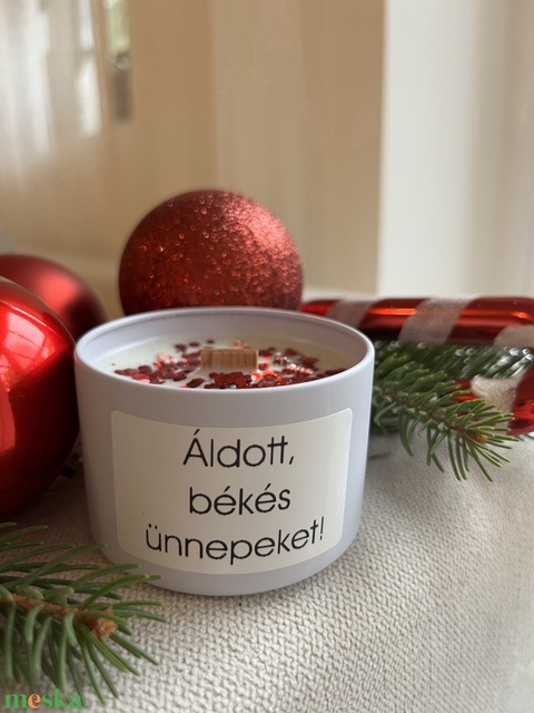 "Áldott,békés ünnepeket" - Díszdobozos karácsonyi egyedi feliratos szójaviasz gyertya