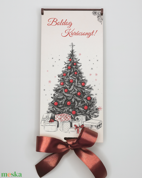 Elegáns karácsonyfa mintás, UV nyomott pénzátadó doboz