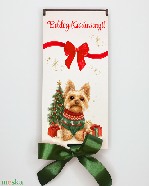 Karácsonyi kutyis UV nyomott pénzátadó - Yorkie pulcsiban