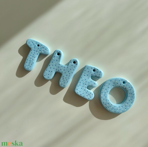Kerámia betű kék színben,kézzel festett – név dekor gyerekszobába, ajtóra, egyedi babaszoba faldekor