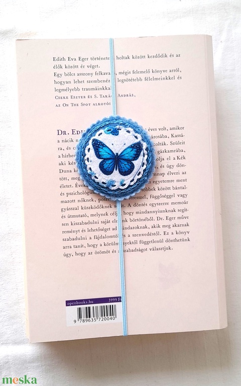 Kék csillámos , lepkés könyvjelző