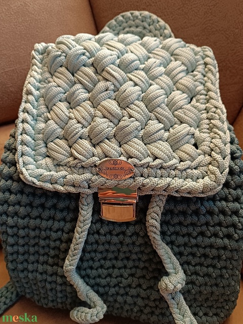 Egyedi horgolt hátizsák pisztácia/zsálya színben.