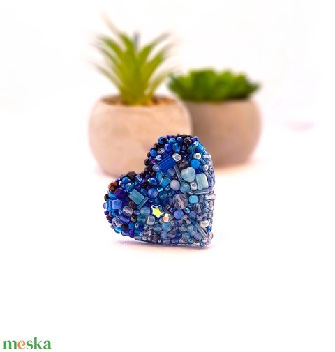 - Anyaga: filc, üveggyöngy, fém kitűző alap