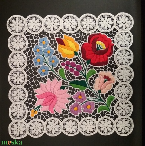 Riseliő csipke kalocsai virágokkal, margarétás szegéllyel