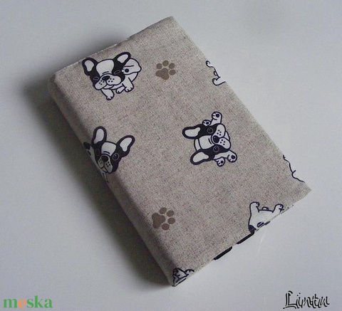 Textil könyv- vagy határidőnapló borító állítható szélességgel, kis bulldogok