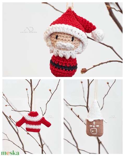 Horgolt karácsonyfadísz szett – Mikulás, pulcsi és házikó