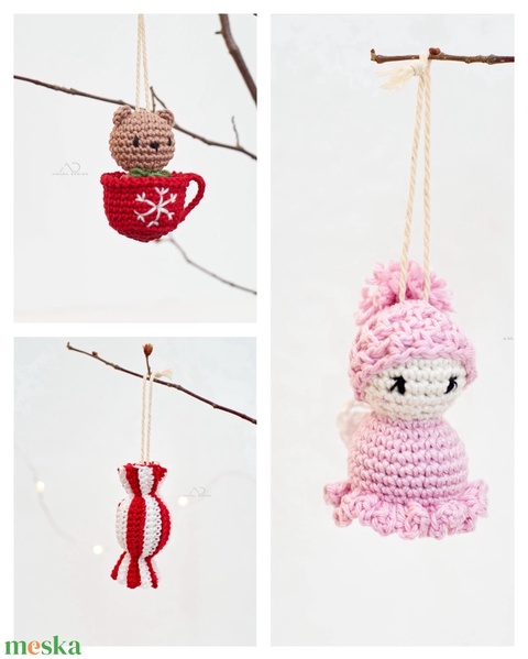 Horgolt karácsonyfadísz csomag – cukorka, tündér, bögrés maci