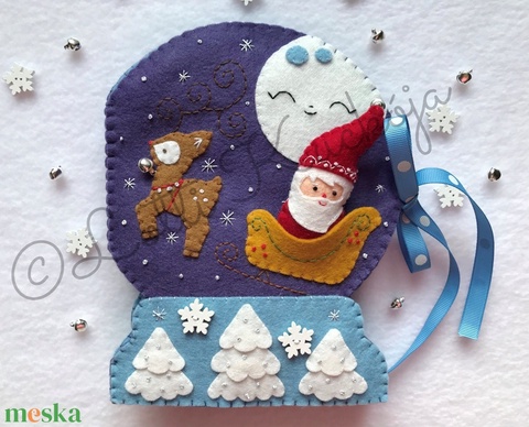 - Anyaga: gyapjúfilc anyag, hímzőfonal, szalag, csengettyű, gomb