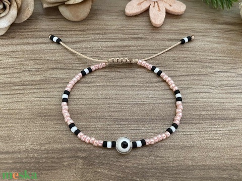 - Anyaga: japán kásagyöngy, vigyázó szem gyöngy, viaszos zsinór