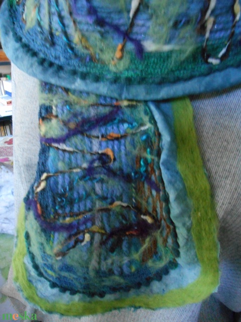 nemezelt sál /kék-zöld sál /Különleges sál / fodros sál