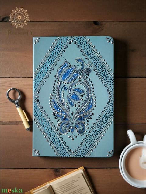 Világoskék virágmotívumos mandala notesz (A/5, kemény fedeles)