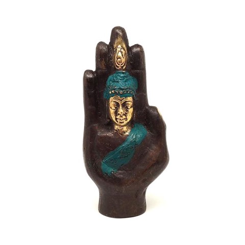 Réz figura Buddha kéz arany kék 10,5x5cm