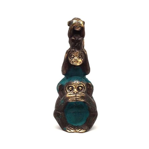 Réz figura Három bölcs majom arany-kék 10x4cm