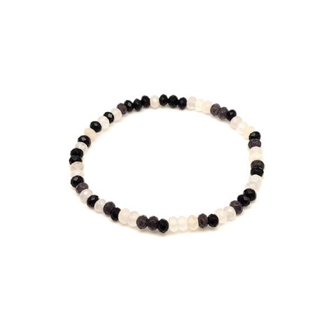 Achát fazettált színezett fekete-fehér korong karkötő 4×3 mm