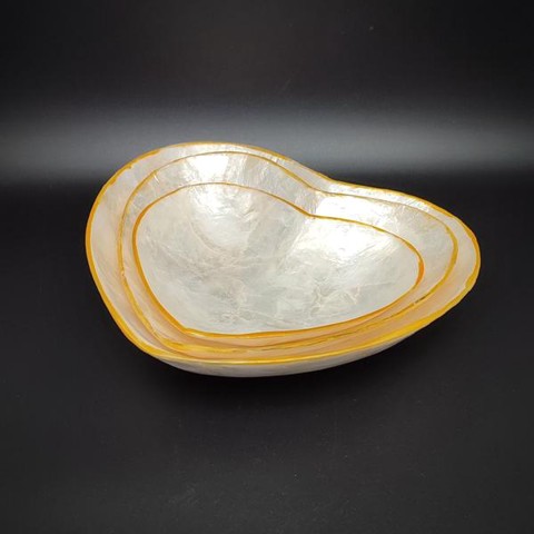Kagyló szív alakú arany szélű tál szett (3 db, 10–14 cm)