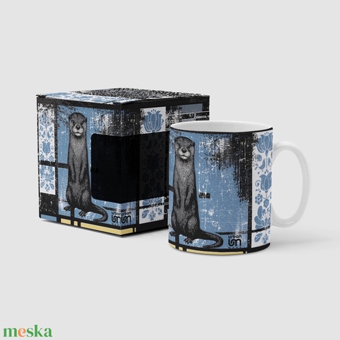 Egyedi magyar design bögre díszdobozban, modern vidra mintával