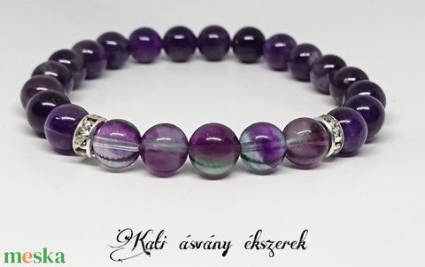 Ásvány neve, mérete: fluorit 5 db. 8 mm-es, ametiszt 17 db. 8 mm-es
