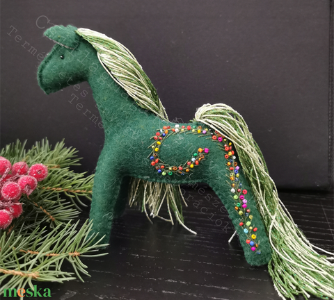 - Anyaga: prémium gyapjúfilc, magyar gyapjú, színes gyöngyök, hímzőfonal, csillogó zöld fonalak