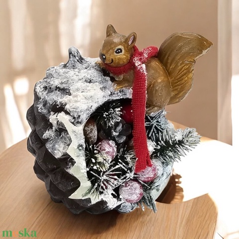 Mókusos havas kaspó – kézműves téli dekoráció
