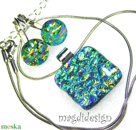 Színjátszó buborékok üvegékszer szett nyaklánc, kapcsos fülbevaló